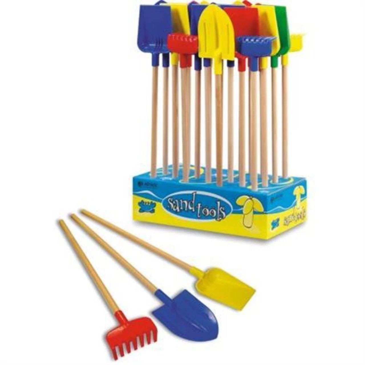 Kindergartengeräte in verschiedenen Ausführungen. Schaufel, Rechen oder Spaten. Mit Kunststoffblatt und Holzstiel. Länge ca. 77cm