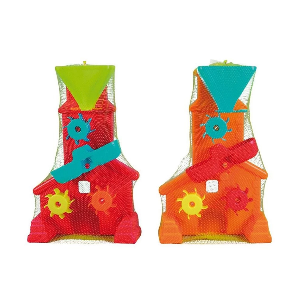 Sandmühle groß, 2 Farben: Liebe Sandkastenliebhaber/ -innen aufgepasst…Staune und erlebe wie Sand oder Wasser durch den Trichter laufen und die einzelnen Räder in Bewegung bringen. Die Mühle hat die Form eines Hauses.