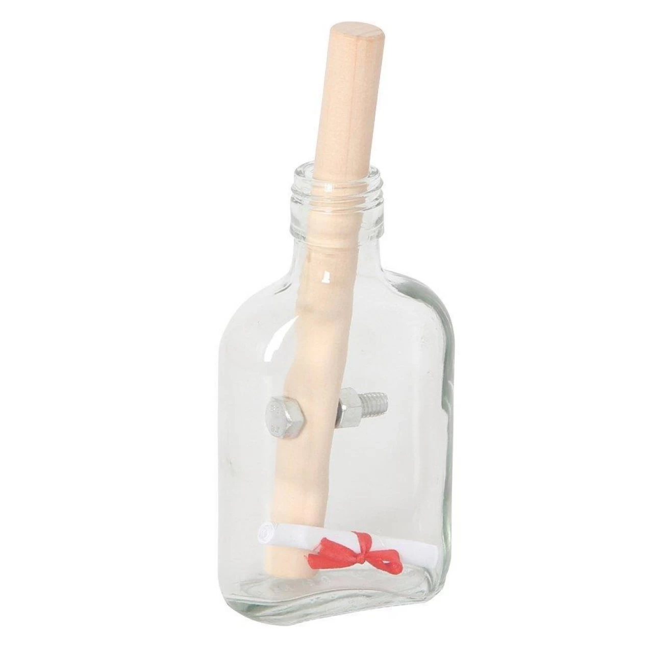 Spannendes Flaschenpuzzle. Mit Fingerspitzengefühl, Geduld und Know-How läßt sich die Flaschenpost befreien.