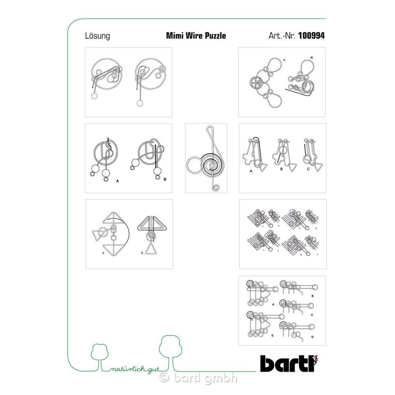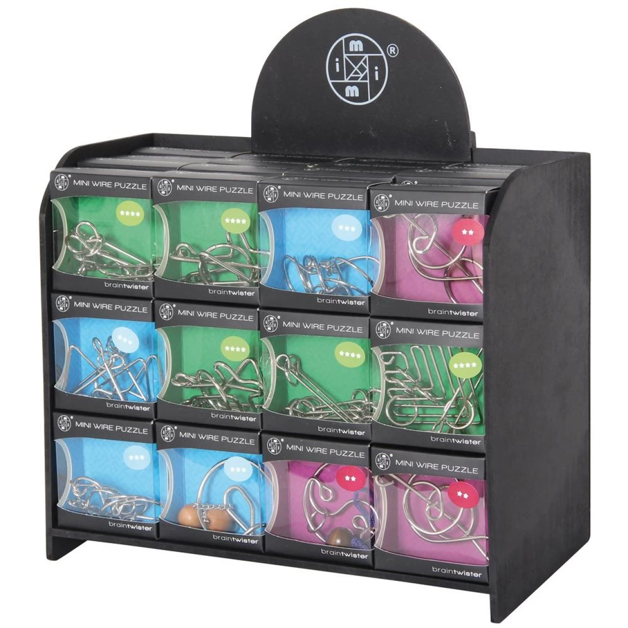 48 Metallpuzzles in acht Motiven im Holzdisplay