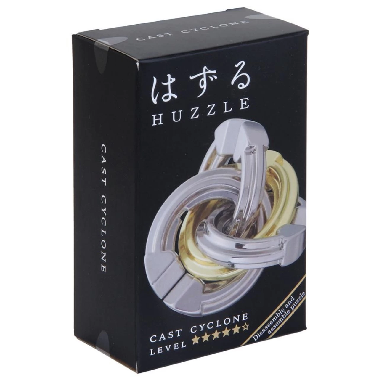 Aufgabe der verzwickten Metallpuzzles ist es, die Teile voneinander zu lösen und wieder zusammen zufügen. Der Name setzt sich zusammen aus ‚HUZZLE‘ von ‚to hug and nuzzle‘ (= umarmen und liebhaben) und ‚to cast‘ (= Metall gießen). Die Puzzles werden aus Gießzink gegossen.