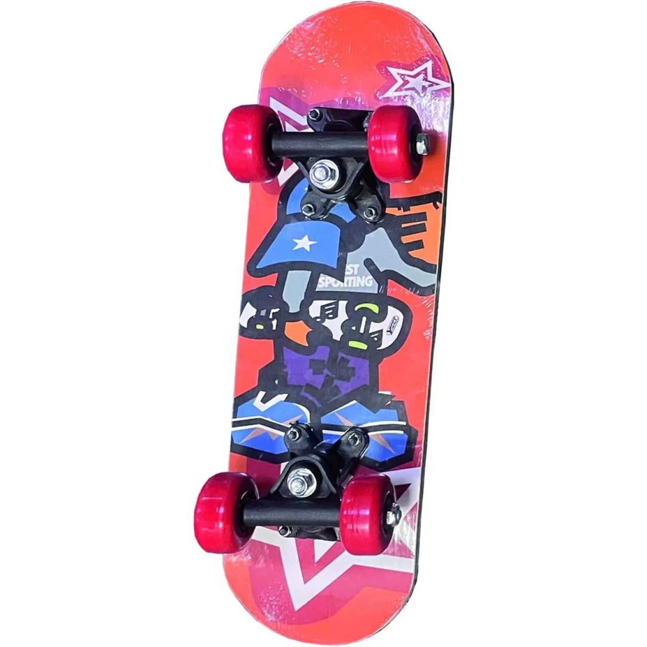 Best Sporting Mini-Skateboard – Du suchst noch nach dem perfekten Geschenk für die Kids? Der Sommer steht vor der Tür und die Kinder wollen an die frische Luft aber alles andere als spazierengehen? Wir bieten Dir ein hochwertig verarbeitetes Mini-Skateboard speziell für die ganz Kleinen. Unsere Skateboards verbinden eine wertige Verarbeitung toller Materialien mit coolen und bunten Designs der Decks. Das Skateboard für Kinder macht da keine Ausnahme. Das beschichtete Skateboard-Deck ist aus 7-lagigem Ahornholz gearbeitet. Das gibt dem Deck genau die richtige Balance zwischen Flexibilität und Härte. Dank Achsen aus gehärtetem Plastik und Skateboard Rollen aus PVC in der Größe 25 x 48 mm Rollen die Kinder auch nach langer Zeit noch souverän im Park oder auf der Straße. Das Board ist für ein maximales Gewicht von 20 kg ausgelegt und daher für die ganz kleinen Skateboard Anfänger besonders gut geeignet. Das flexible Deck mit Anti-Rutsch-Oberfläche hat die Maße 43cm x 12,5 cm. Die Höhe des Boards liegt bei 9 Zentimetern. Neben all diesen Eigenschaften überzeugen all unsere Skate-Boards auch beim Thema Style und Design. Das Deck des Skateboards Mini ist beidseitig mit einem bunten Comic-Motiv bedruckt. Dadurch ist es für die ganz kleinen besonders interessant und motiviert zu den ersten Skate-Versuchen. Das Board ist daher auch ein tolles Geschenk für alle kleinen Skateboard Fans.