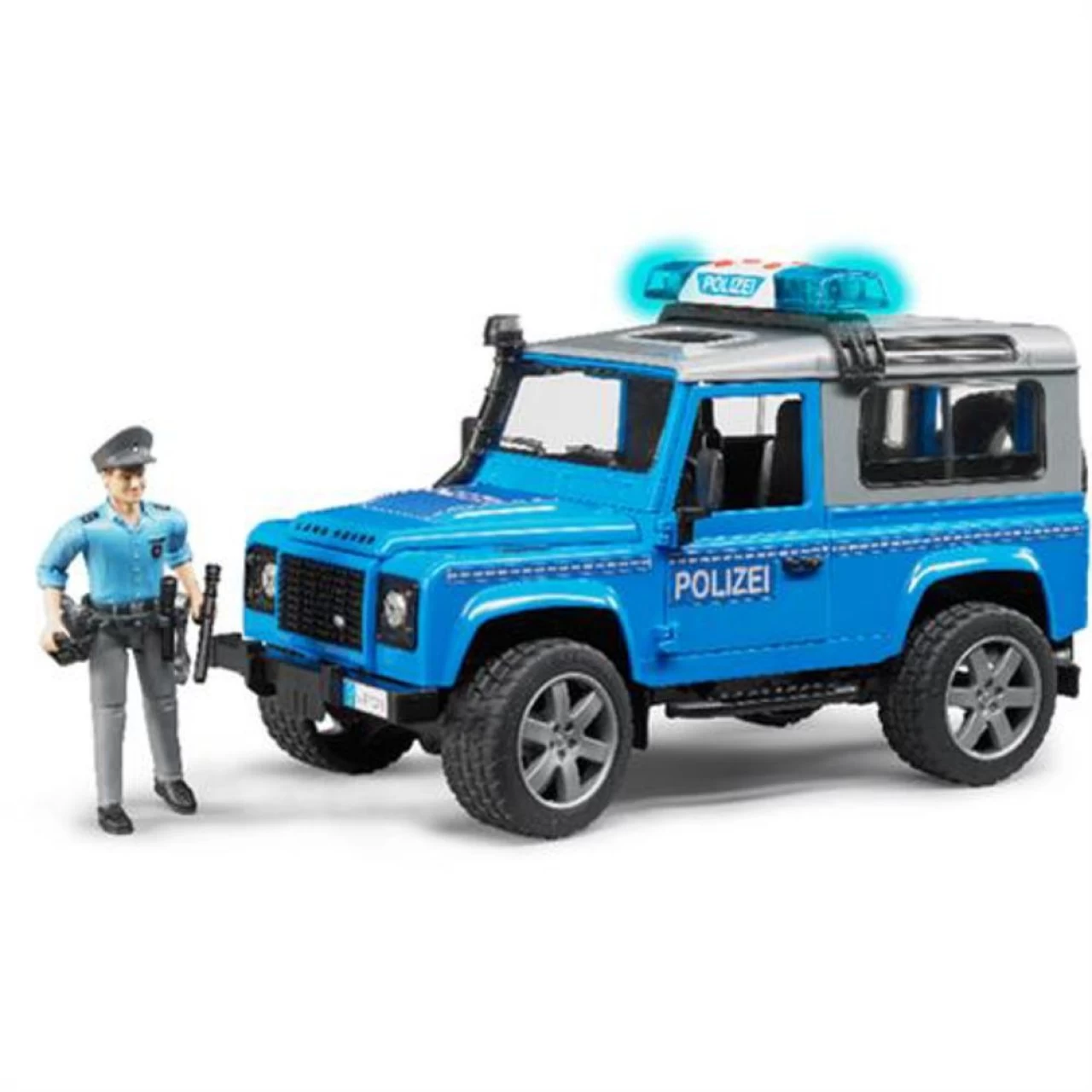 Bruder 02597 – Land Rover Defender Station Wagon Polizeifahrzeug mit Polizist und Ausstattung