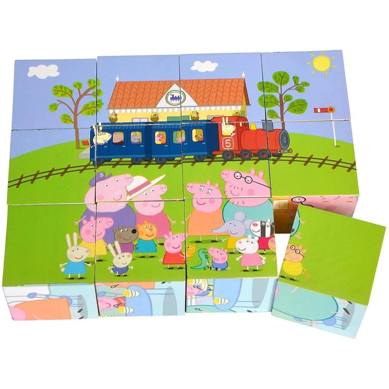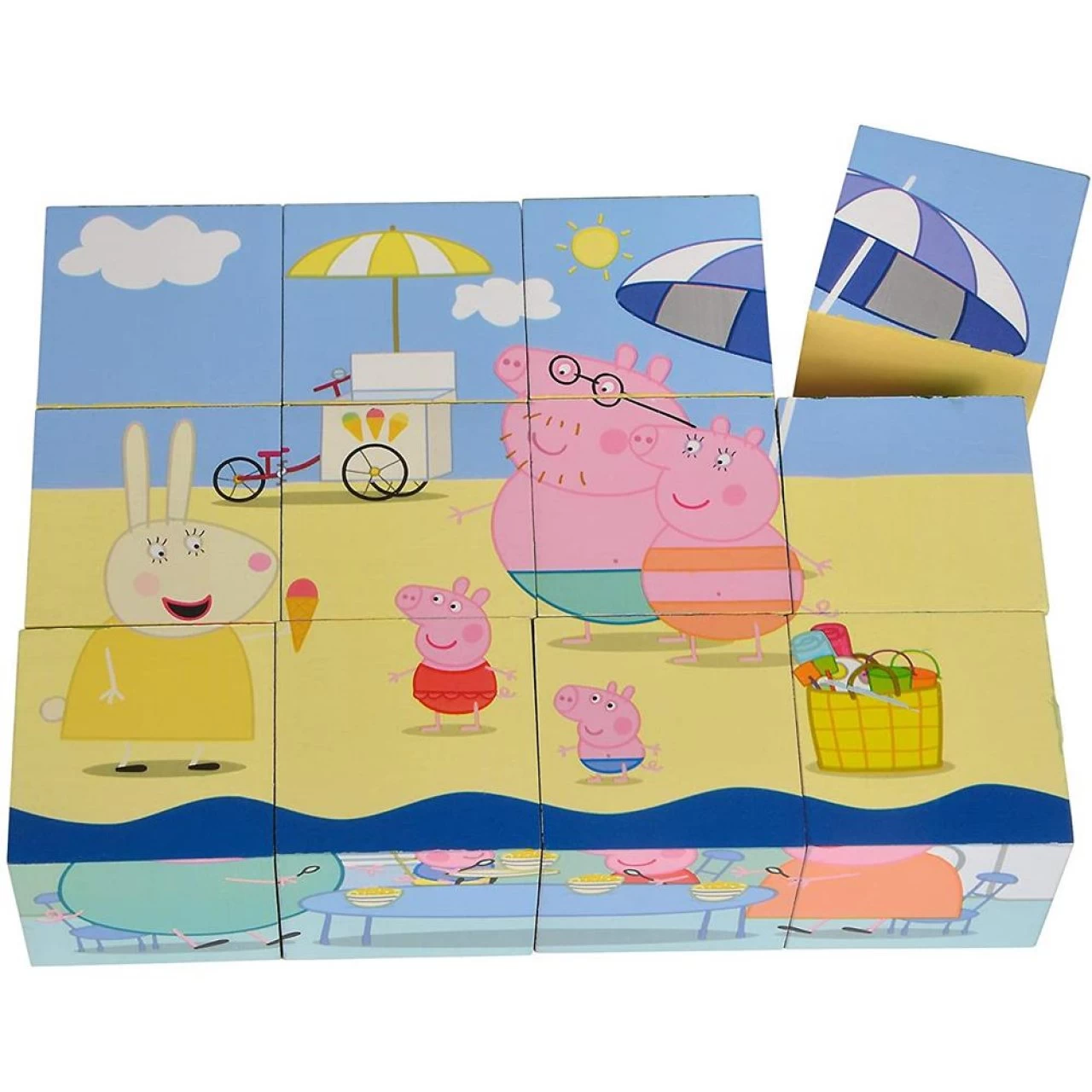 Je nachdem wie man die Steine dreht entsteht mit dem Peppa Pig Eichhorn Bilderwürfel eines der sechs Motive aus Peppa Pigs’s Welt. Mit der Hilfe eines ausgebreiteten Motivbogens werden die Steine mit der richtigen Seite darübergelegt. Mit den zwölf Bausteinen können vielfältige Motive mit Peppa Pig gelegt werden, ob ein Picknick im Wald oder ein Eis am Stand.