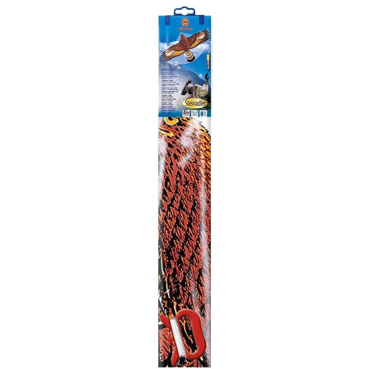 Der Kinderdrachen mit Steinadler Motiv ist der Klassiker unter den Drachen. Der farbenprächtige Druck auf transparenter Folie ergibt ein realistisches Vogelbild am Himmel. Durch die 3-fach verstellbare Drachenwaage ist er für unterschiedliche Windstärken von 15 bis 45 km/h geeignet. Das Modell ist ca. 122 x 68 cm groß und wird komplett mit Wickelgriff und Drachenschnur geliefert. Er ist für Kinder ab 6 Jahren geeignet und Made in Germany.