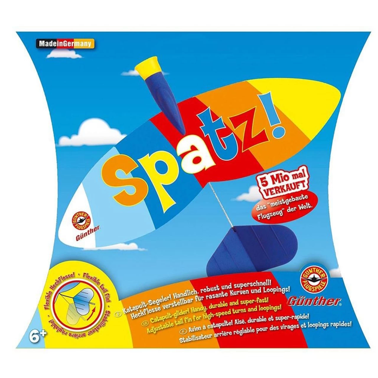Klassiker aus dem Hause Günther Flugspiele. Hervorragende Flugeigenschaften! Spritziger Flieger mit folienbespannten Flügeln Größe ca. 24×20 cm Ab 6 Jahre Atemberaubende Flugkunststücke durch flexible Heckflosse Kurven und Loopings durch justieren der Heckflosse.