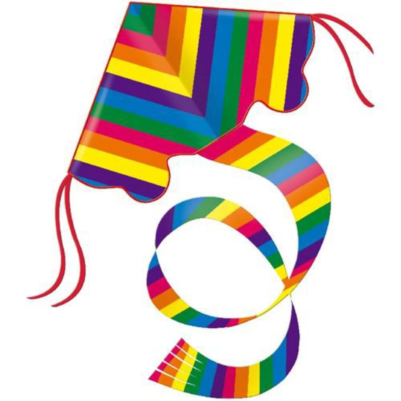 -Rainbow Einleinerdrachen aus Polyester -Deltaform mit 1,5m langem Schwanz -Ab 6 Jahren -Größe aufgebaut: 97 x 58 cm -Windstärke: 15 -45 km/h -Schnurlänge: 35 m