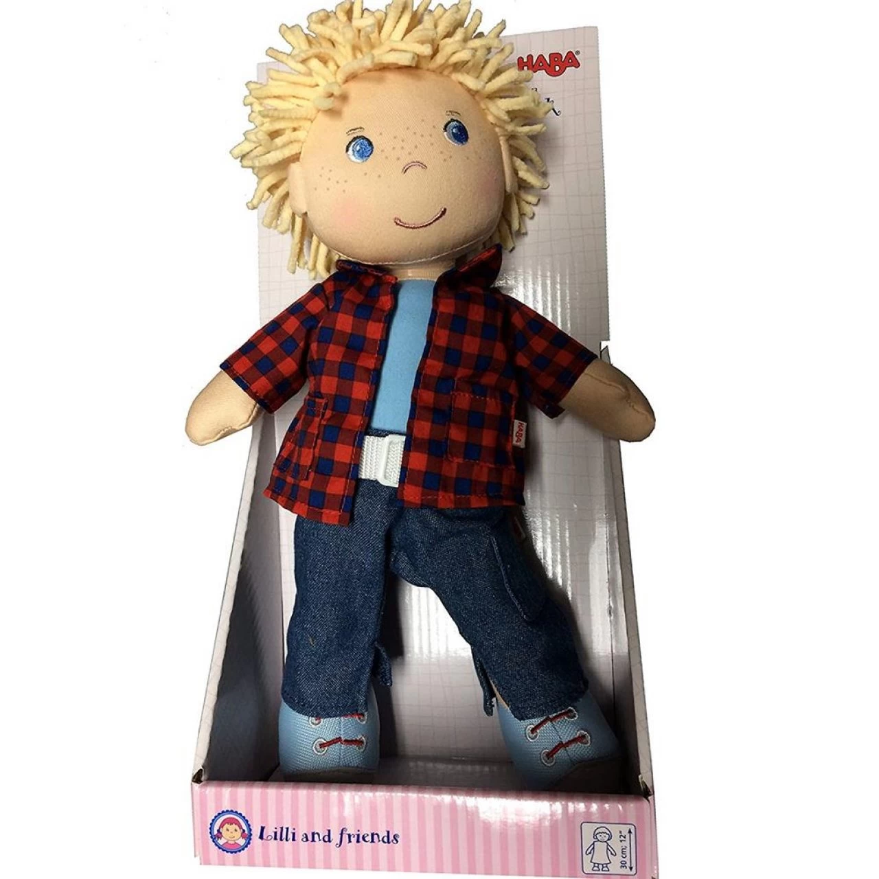 Haba 302843 – Puppe Nick, Weich- und Stoffpuppe ab 18 Monaten, mit Kleidung und Haaren, 30 cm
