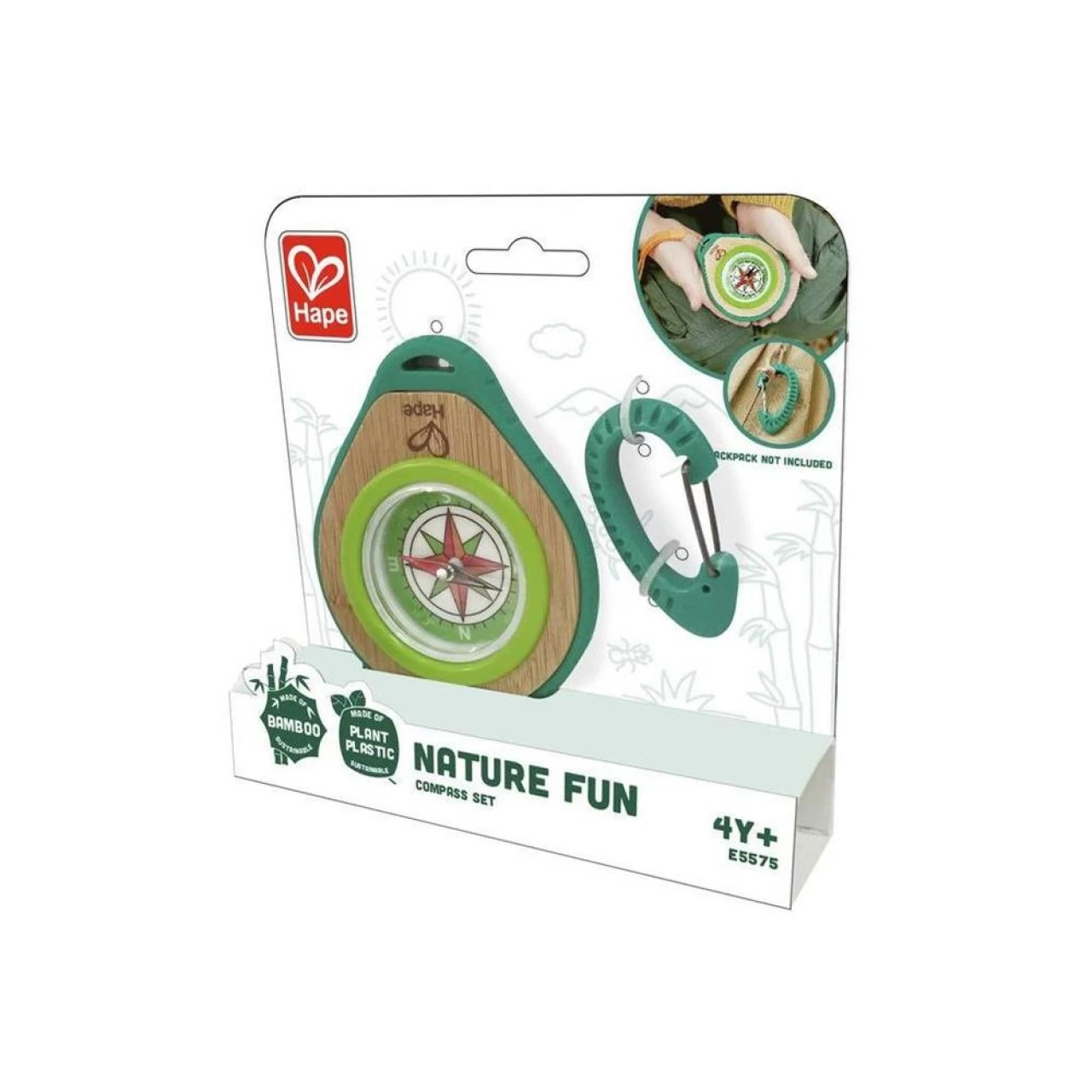 Bereit für ein Abenteuer im Freien? Das Camper-Set beinhaltet einen Kompass mit Spiegel sowie einen Karabinerhaken. Hergestellt aus nachhaltigen Materialien.