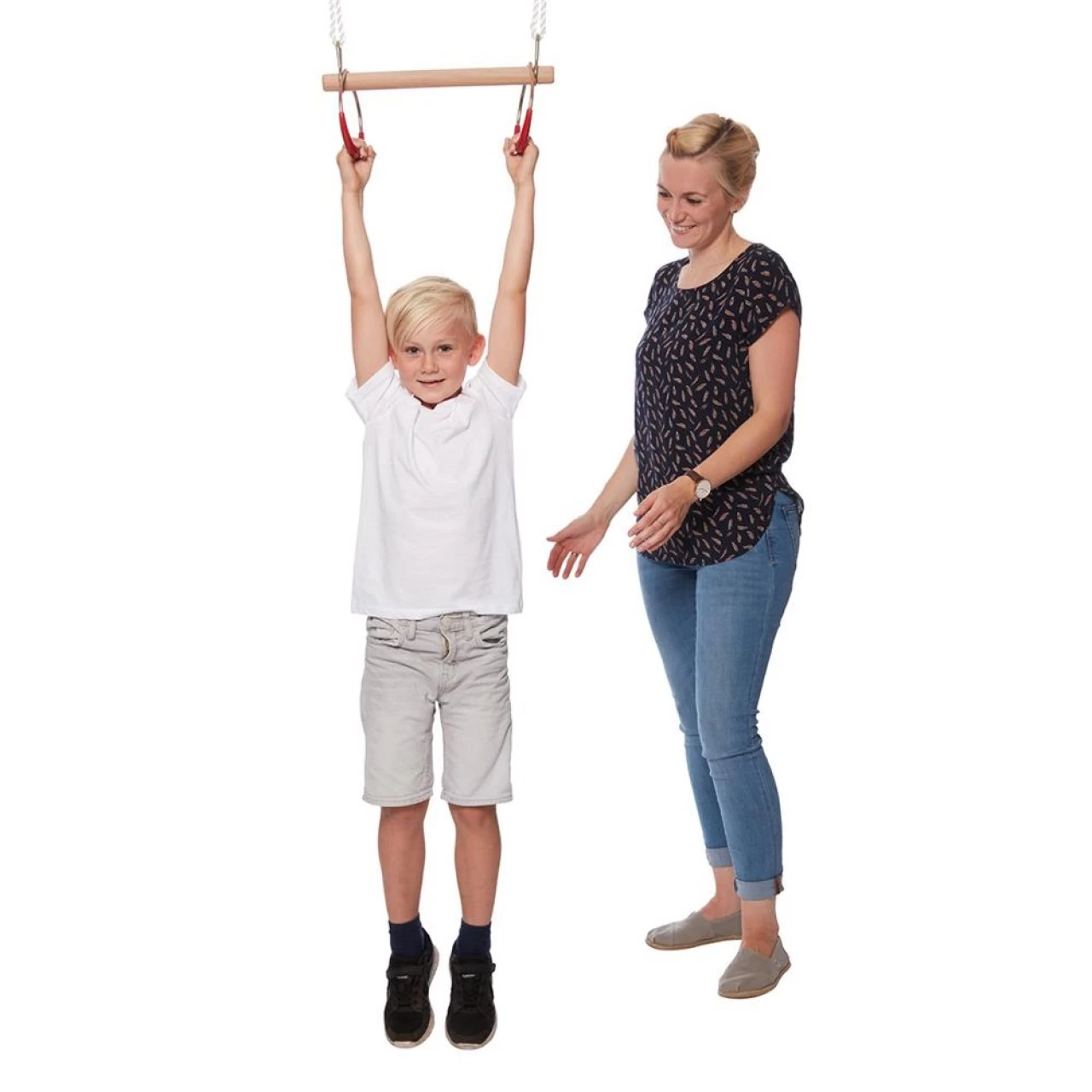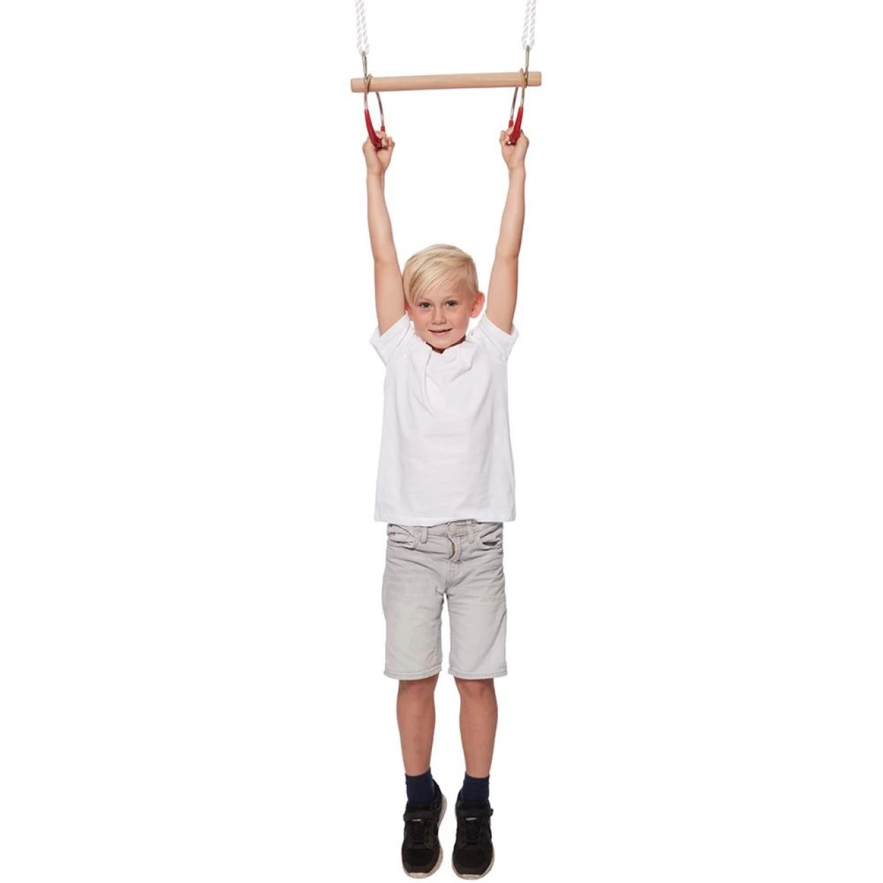 Hier können kleine Akrobaten ihre Körperbeherrschung, Kraft und Geschicklichkeit trainieren! Ein starkes Holz dient als Sitz- und Turnstange, stabile Griffe geben Kinderhänden Halt bei den Turn-übungen!