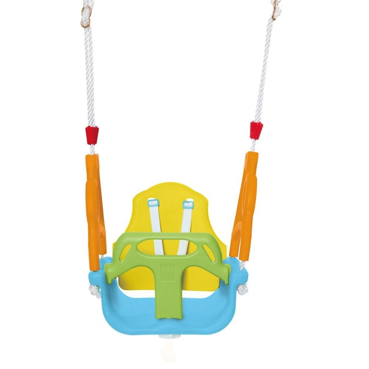 Bei der Babyschaukel ist das Baby durch Bügel und hohe Rückenlehne hervorragend gesichert. Wird es beim Schaukeln sicherer, können nach und nach Bügel und Lehne abgenommen werden: Übrig bleibt ein Schaukelbrett mit seitlichem Rutschstopp. Hochwertiges Kunststoffmaterial.