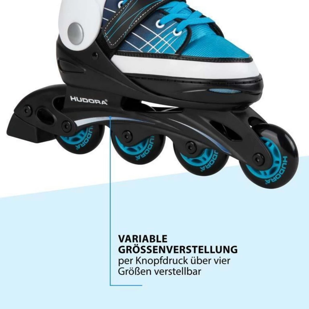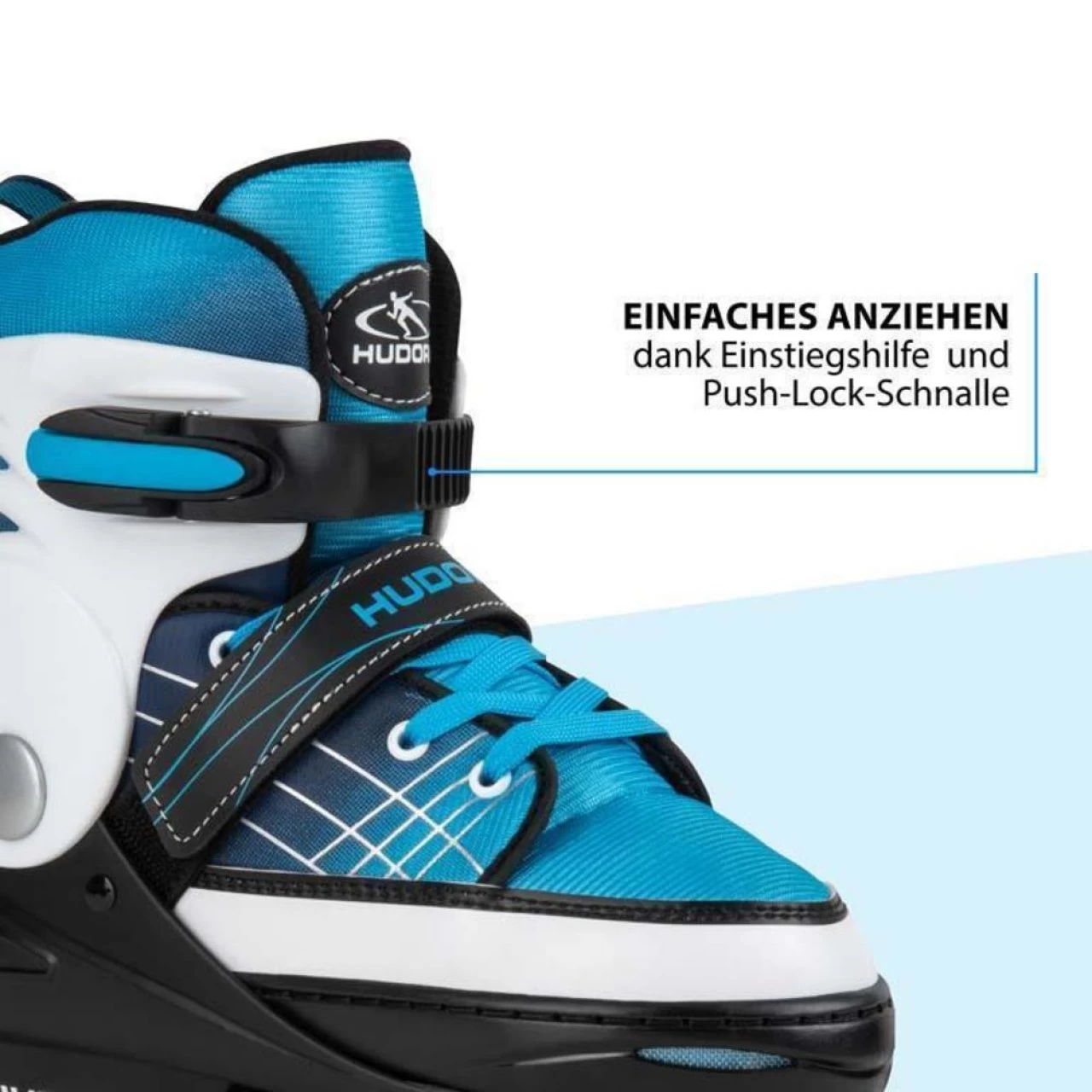 Kleine Skating-Fans können schon ganz schön schnell unterwegs sein. Und weil nicht nur die Begeisterung schnell wächst, sondern auch die kleinen Füße, hat HUDORA mit den KINDER INLINE SKATES BASIC ein genial mitwachsendes Modell entwickelt: Über jeweils vier Größen sind die Skates ab Schuhgröße 30 auf Knopfdruck verstellbar und sichern so jahrelangen Skating-Spaß. Der Nylon-Stiefel mit der genähten Zehenkappe ist besonders cool und lässig. In zwei wunderschönen Pastelltönen erhältlich, machen die KINDER INLINE SKATES BASIC auch optisch schwer was her. Zudem besticht das Design in mint auch noch mit dezenten Glitzer Sprenkeln. Durch eine Einstiegshilfe, den Power-Strap und die Push-Lock-Schnalle ist der Skate besonders schnell und einfach an- und ausgezogen – zur Erleichterung für die Eltern. Bequem, mitwachsend, praktisch, sicher und schön – da steht dem Skating-Spaß auch für mehrere Jahre nichts mehr im Wege!
