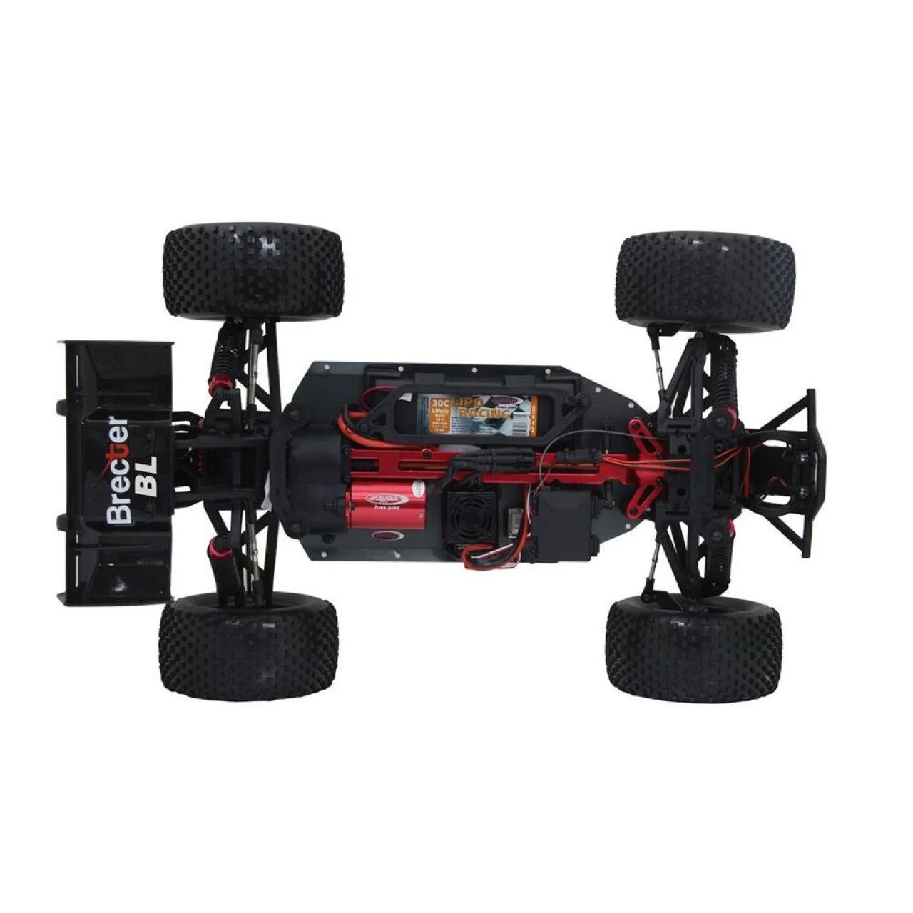 Jetzt kommt echte Power auf die Piste. Der Brecter mit Allradantrieb, bulligen Reifen, riesiger Bodenfreiheit, Einzelradaufhängung und kräftigen Stoßdämpfern. Sie lassen diesen Truck mit seinem Alu Chassis in jedem Gelände gut aussehen. Beste Verarbeitung, von Chassisversteifung über Antrieb und Elektronik machen den Brecter zu einem echten Wüstenracer und das auch im richtigen Dreck – denn die hochwertige Elektronik ist Wassergeschützt und die Getriebeeinheit wurde zusätzlich gekapselt. Kaum ein Hindernis ist diesem Praftpaket zu steil, kein Sprung zu spektakulär. Der neue Maßstab in der Elektroklasse. Kräftiger Brushless Motor 3200KV, voll einstellbares Fahrwerk mit Öldruckstoßdämpfer, Antriebswellen aus Stahl sind nur einige Highlights die den Brecter zu einem Musthave machen. Auspacken, aufladen und Spaß haben!