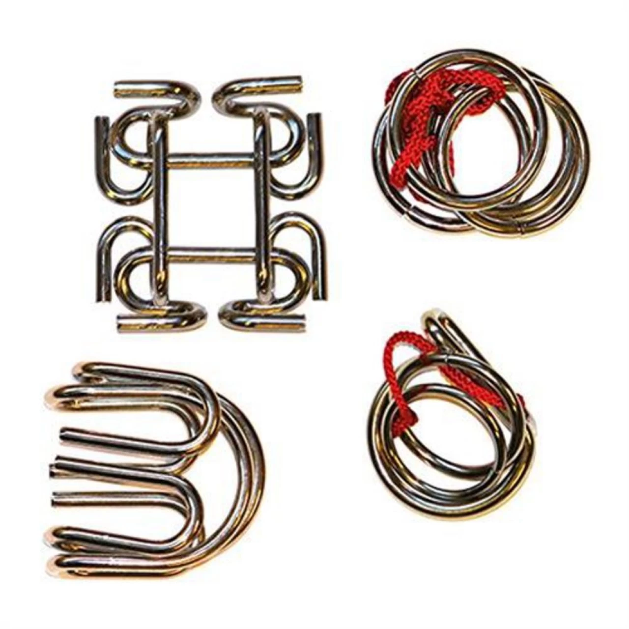 Vier knifflige Metallpuzzles in attraktivem Set. Die Aufgabe besteht darin, die Teile voneinander zu lösen und sie auch wieder zusammenzufügen. Ein passendes Geschenk für kleine und große Puzzle-Freunde.