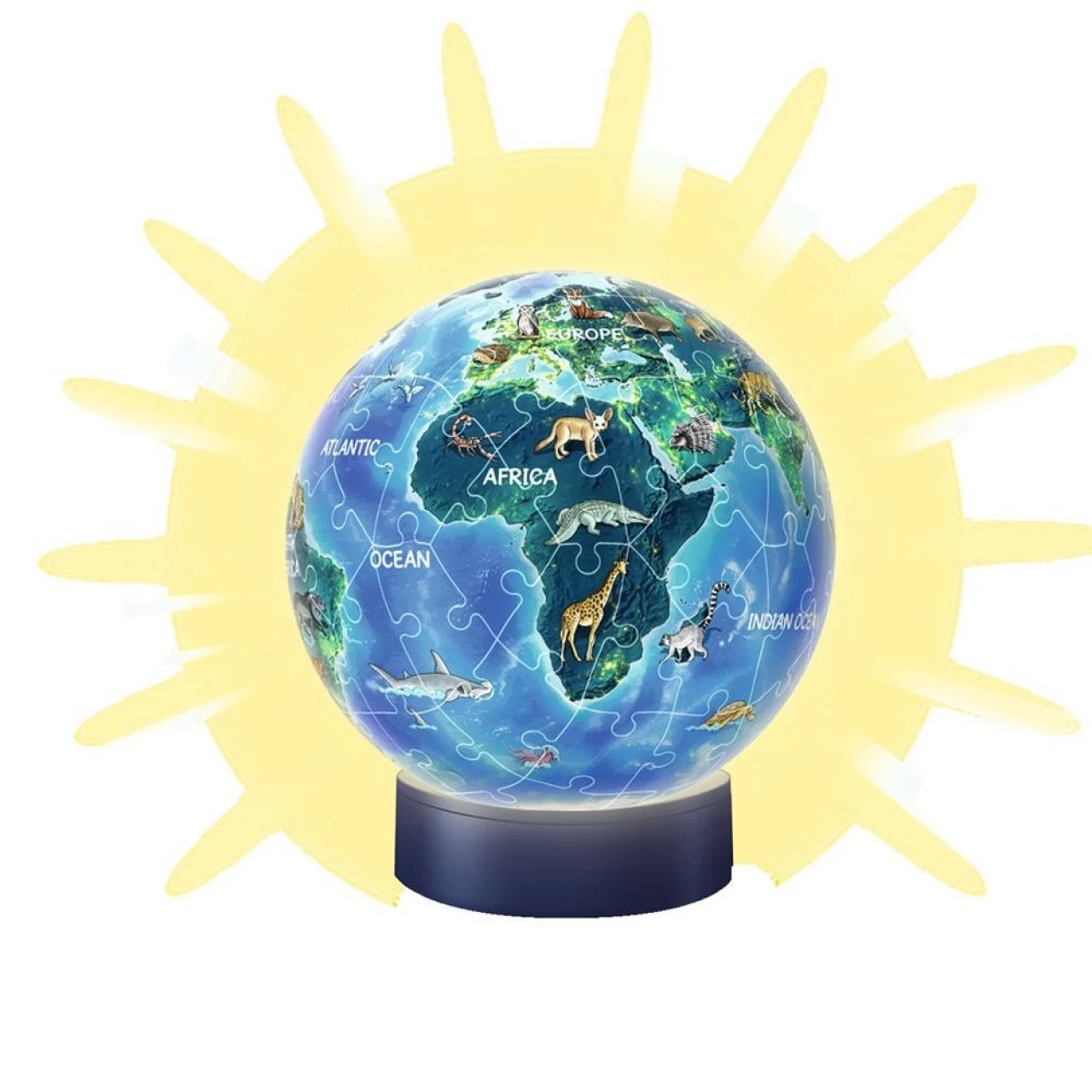 Die farbenfrohe Kindererde wird mit einem Händeklatschen zum außergewöhnlichen Nachtlicht, wenn der Leuchtsockel den Ball von innen erstrahlen lässt. Dank unserer Easyclick Technology passen alle Kunststoff-Puzzleteile perfekt ineinander und formen eine stabile Kugel, ganz ohne Kleben. Die Nummerierung der Teile erleichtert das Vorsortieren und ermöglicht einfaches Puzzeln nach Zahlen.