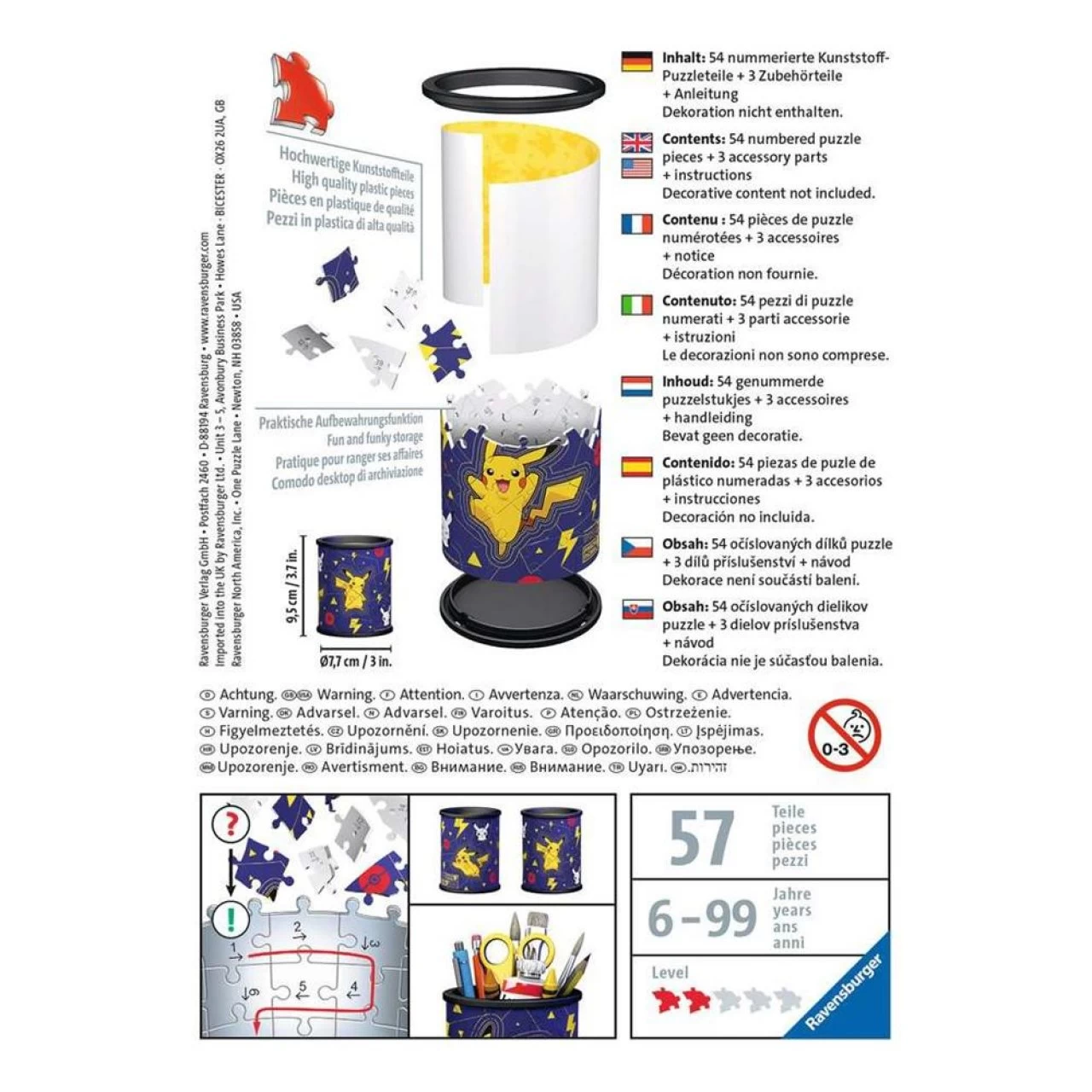 Ravensburger 3D Puzzle 11257 – Utensilo Pokémon Pikachu – 54 Teile – Stiftehalter für Pokémon Fans ab 6 Jahren, Schreibtisch-Organizer für Kinder