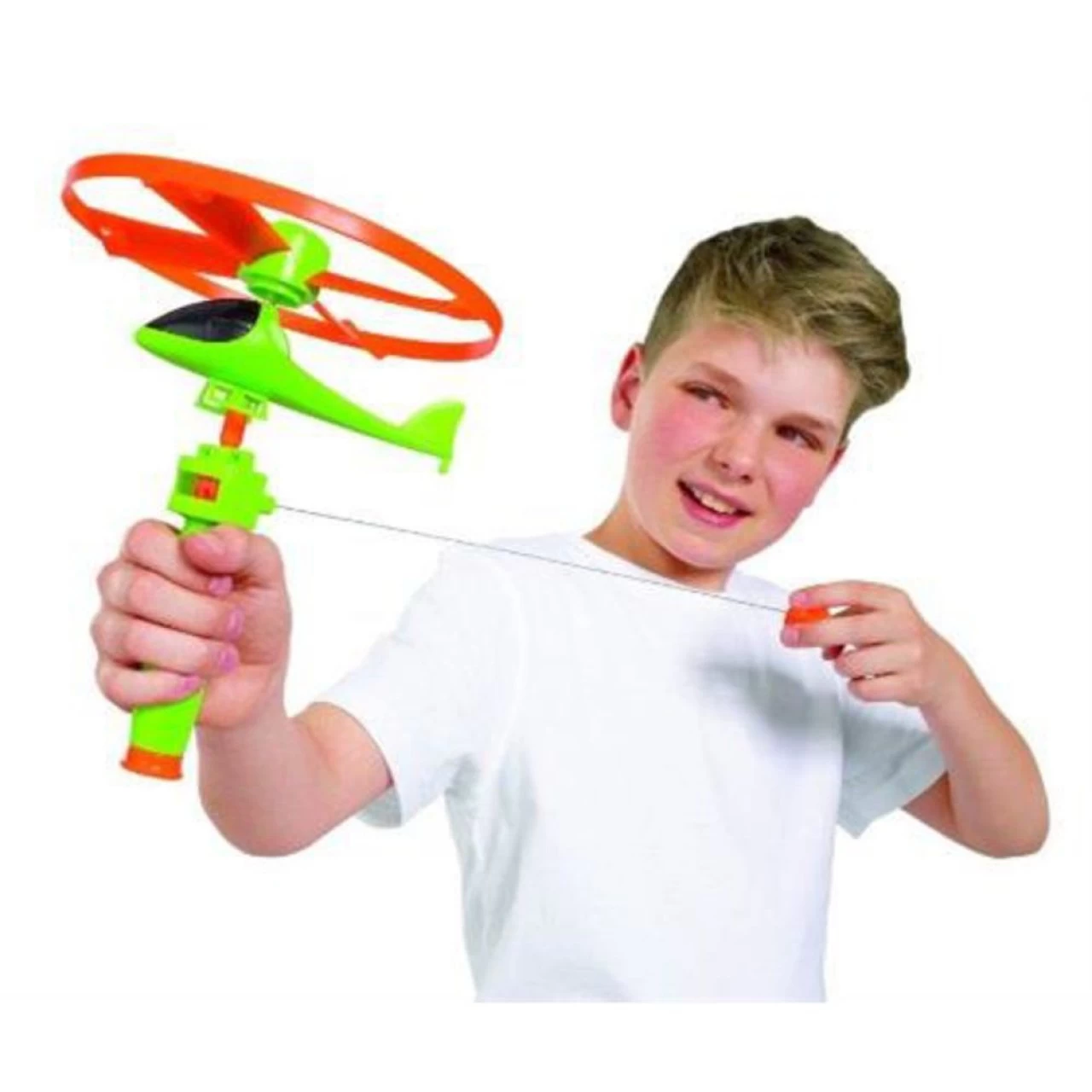 Der Klassiker in jedem Kinderzimmer. Einfach am Seilzug ziehen und schon hebt der Helikopter ab!