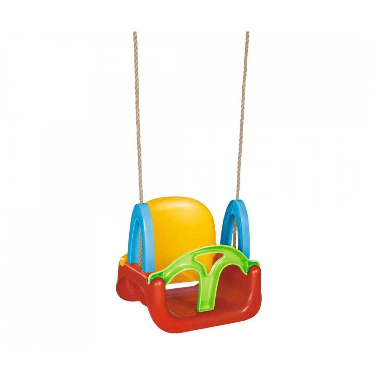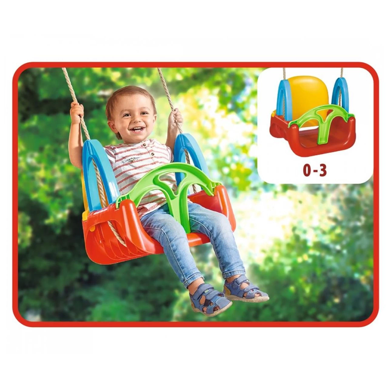 Wachse mit der coolen 3in1 Schaukel. Sie kann je nach Altersgruppe verändert werden. Für die einzelnen Altersabschnitte (0-3, 3-5 und ab 5 Jahren) gibt es entsprechende Sicherheitseinstellungen für die Schaukel. Durch einfache Montage der Rückenlehne kann die Schaukel schnell dem Alter des Kindes angepasst werden.