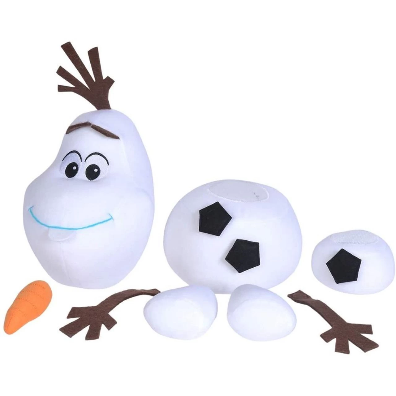 - Lustiges Zusammenbauen – Schneemann Olaf besteht aus mehreren Einzelteilen, die mit Klett aneinander haften. Somit kann man Olaf nach Belieben zerlegen und lustig wieder zusammen bauen