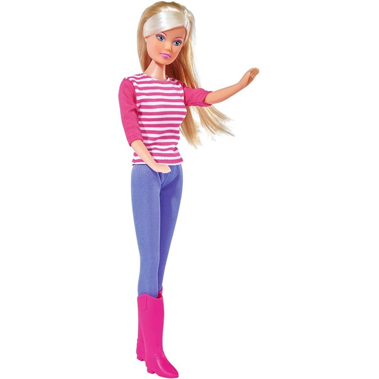 - Steffi als Reitlehrerin – Steffi liebt Pferde und übt ihren Traumberuf als Reitlehrerin aus. Im modischen Reitoutfit mit pinkfarbenen Reitstiefeln gibt sie ihrer kleinen Schwester Evi Love Reitunterricht