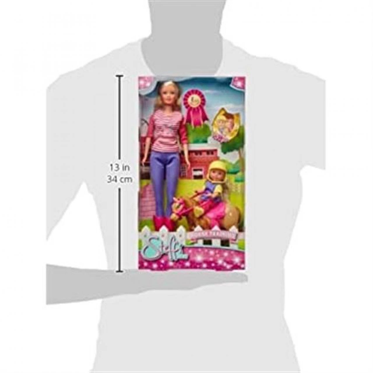 - Mit Evi Puppe und Pony – neben der 29cm großen Steffi Fashion Doll sind im Set auch die 12cm große Evi Love Puppe im Reitoutfit mit Reithelm und ein kleines süßes braunes Pony enthalten, auf dem die kleine Evi sitzen kann