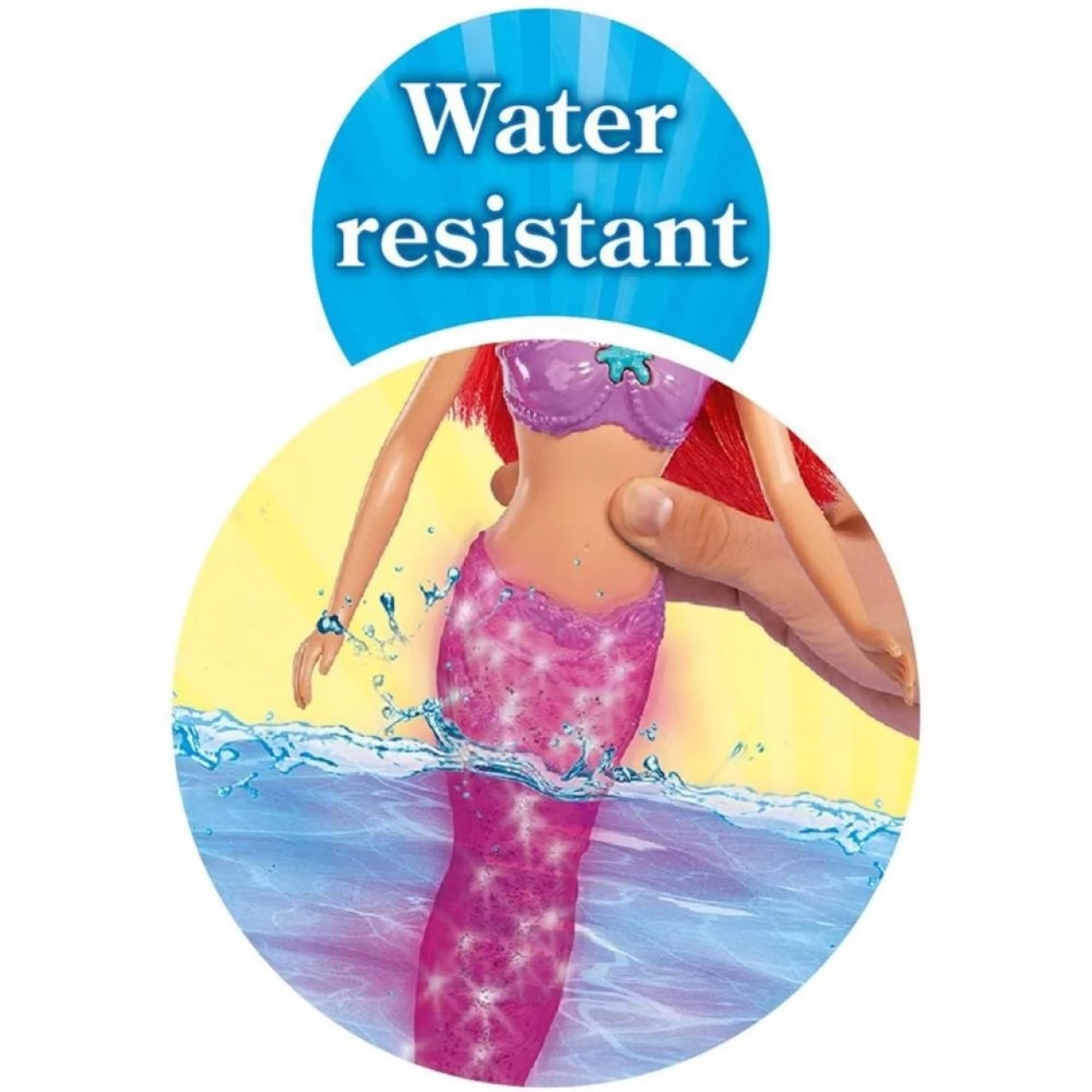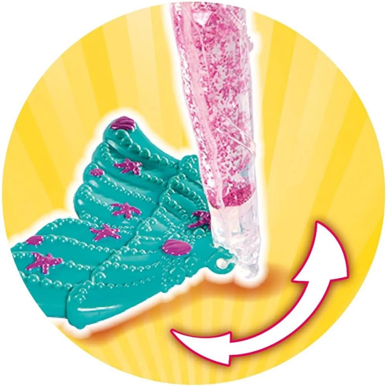 - Leuchtende Schwanzflosse – Schüttelt man Steffis durchsichtige Schwanzflosse, so beginnt diese toll zu glitzern und bei Druck auf den Seestern an ihrer Kette fängt die Flosse an bunt zu leuchten