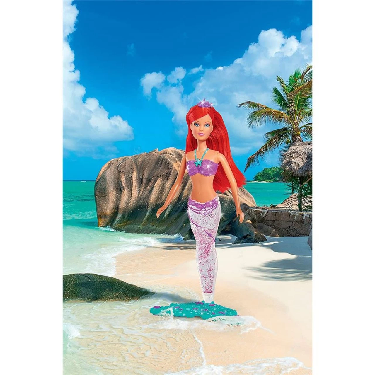 - Steffi als Meerjungfrau – Steffi erkundet als wunderschöne Meerjungfrau mit langen roten Haaren die Unterwasserwelt. Klappt man das Ende der Schwanzflosse um, kann Steffi sogar aufrecht stehen