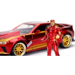 Jada Toys Marvel Iron Man Figur + 2016 Chevy Camaro SS Modellauto 1:24 Fahrzeug Auto Spielzeugauto
