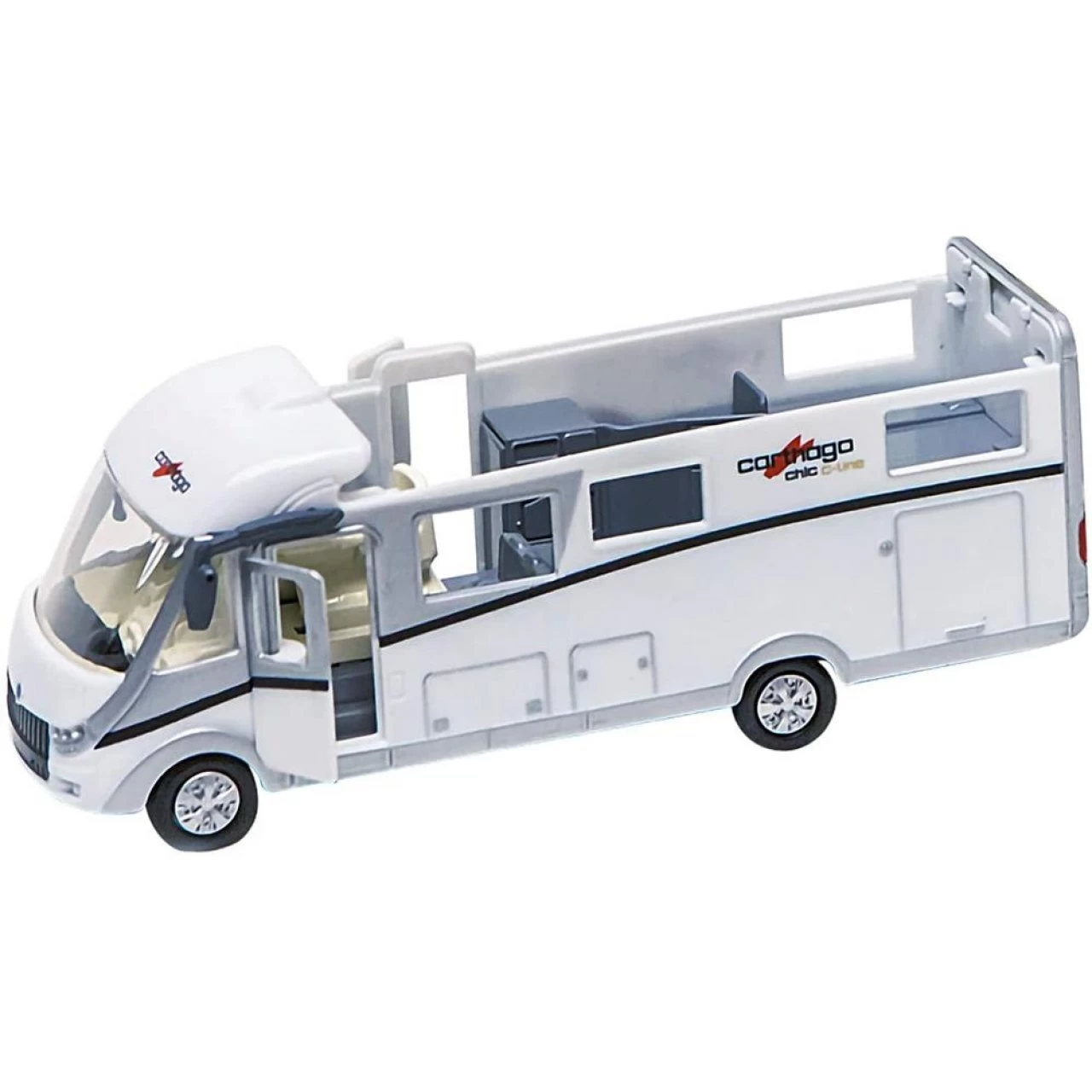 Der Carthago Camper ist weiß und 16 cm lang. Er hat eine Innenraumbeleuchtung, die Türen und das Dach lassen sich öffnen. Außerdem hat er eine Rückzugfunktion,damit er auch allein in den Urlaub rollt.