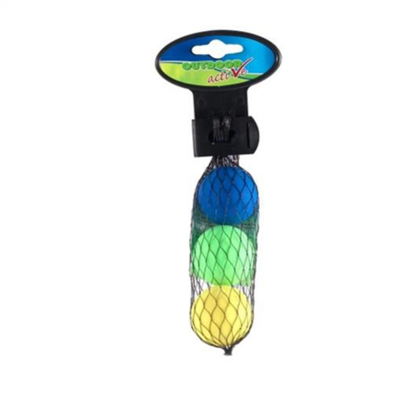 3 Ersatzbälle in rot, grün und gelb im Netz, Durchmesser 4cm.